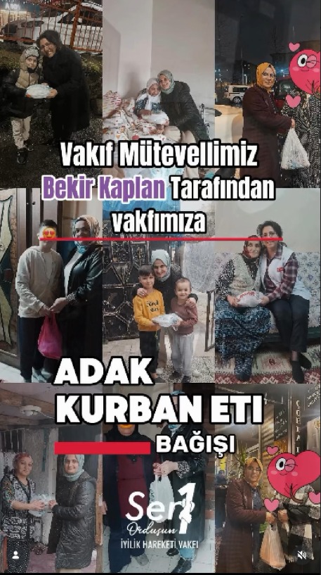 Sen 1 Ordusun İyilik Hareketi Vakfımızın Sosyal İşler Birimi, vakıf mütevellimiz Bekir Kaplan’ın vakfımıza bağışlamış olduğu adak kurban etlerini ihtiyaç sahibi ailelerimize ulaştırmak üzere vakfımızdan teslim almıştır.